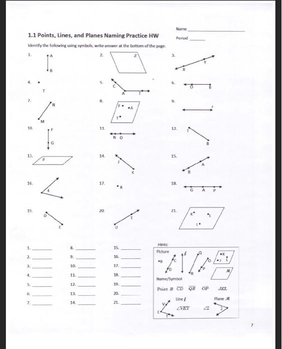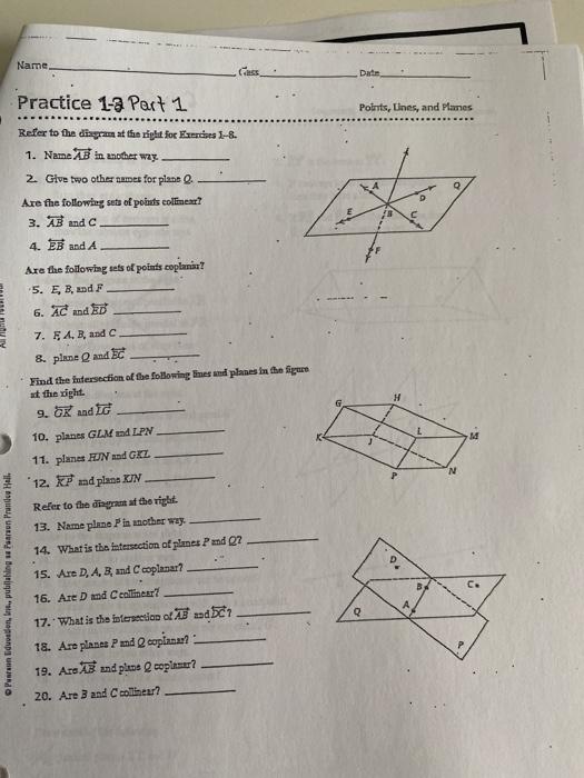 1 1 Points Lines And Planes Worksheet Answer Key kidsworksheetfun