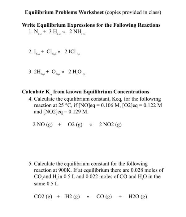 Solved Equilibrium Worksheet 1 Write down equilibrium Chegg com