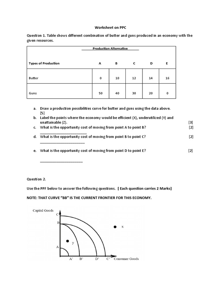 Production Possibilities Curve Practice Worksheet Answers Printable