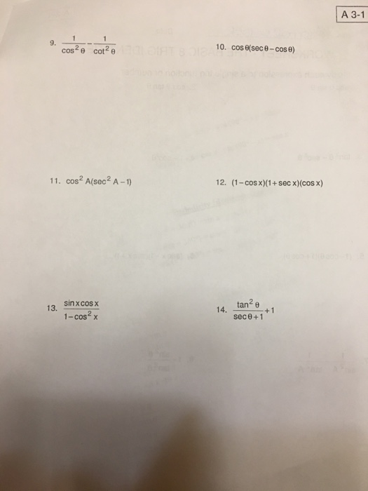 Solved TRIGONOMETRY WORKSHEET #1 NAME: Simplifying and Chegg com