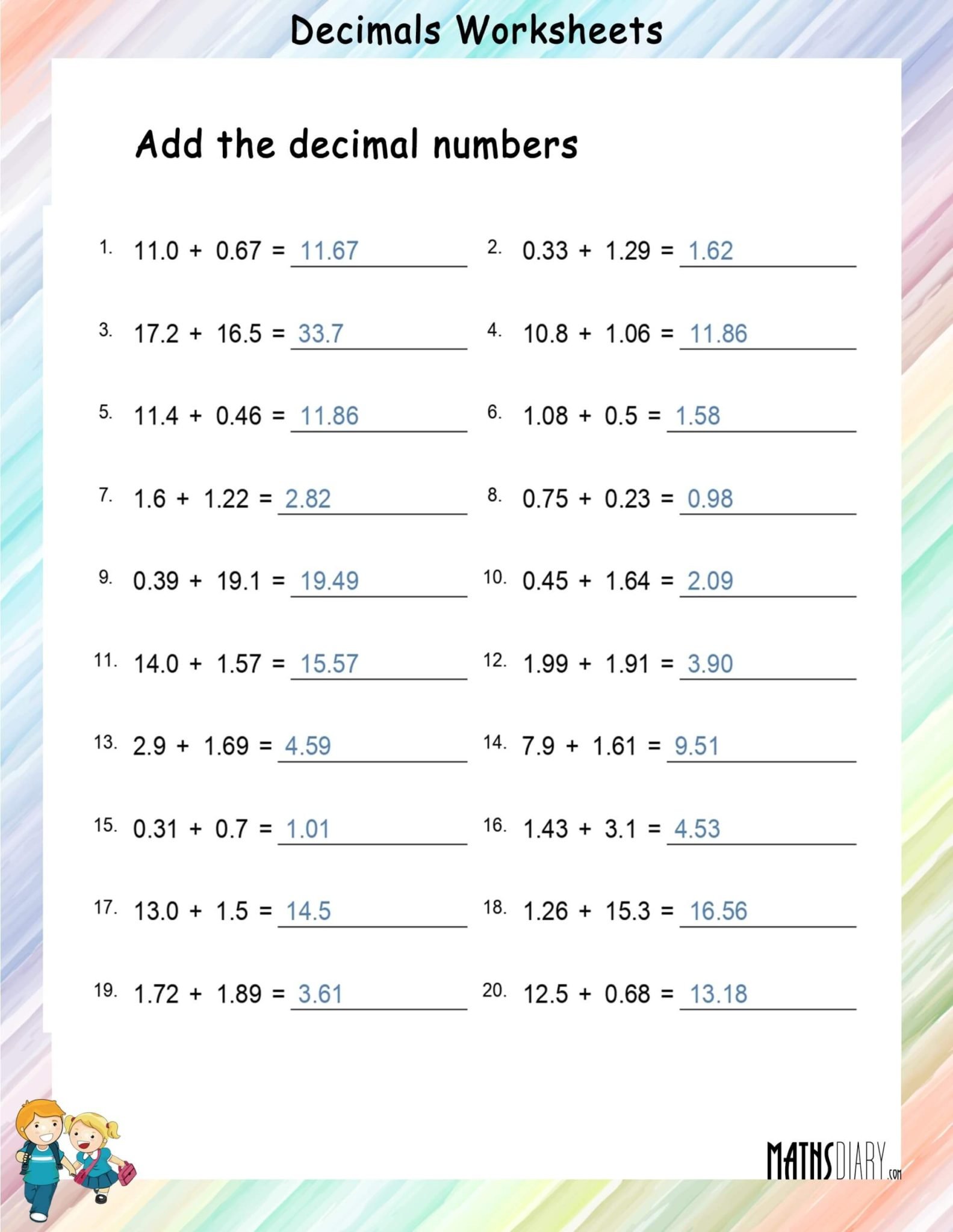 Adding And Subtracting Decimals Worksheets Pdf Printable Worksheets