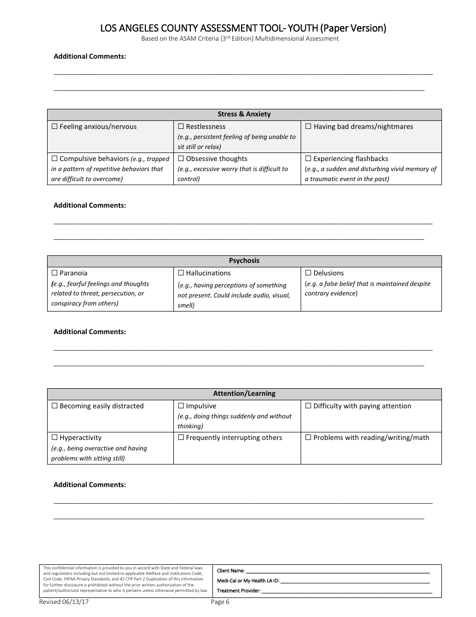 County of Los Angeles California Assessment Tool Youth (Paper