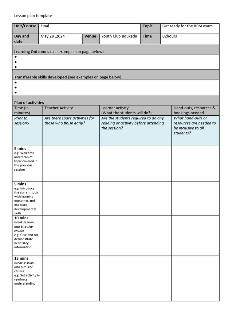 Sample Blank Lesson Plan Template PDFSimpli