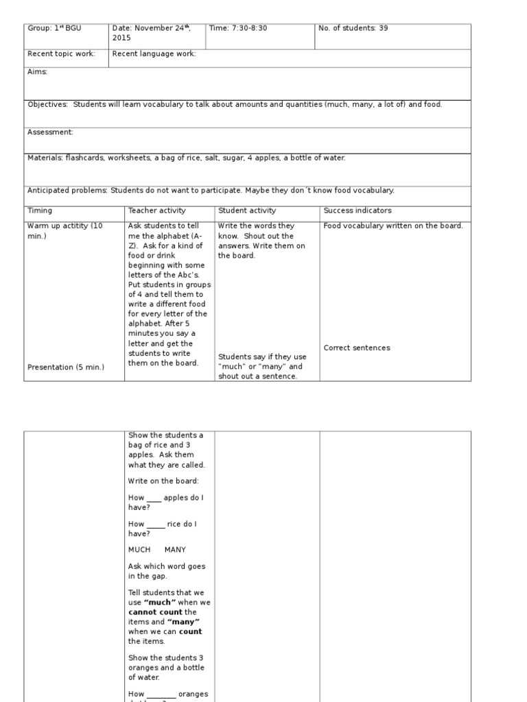 Lesson Plan: How much how many Lesson Plan Vocabulary