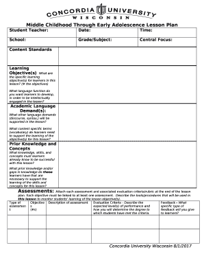 Elementary Lesson Plan Template Download Printable PDF Templateroller