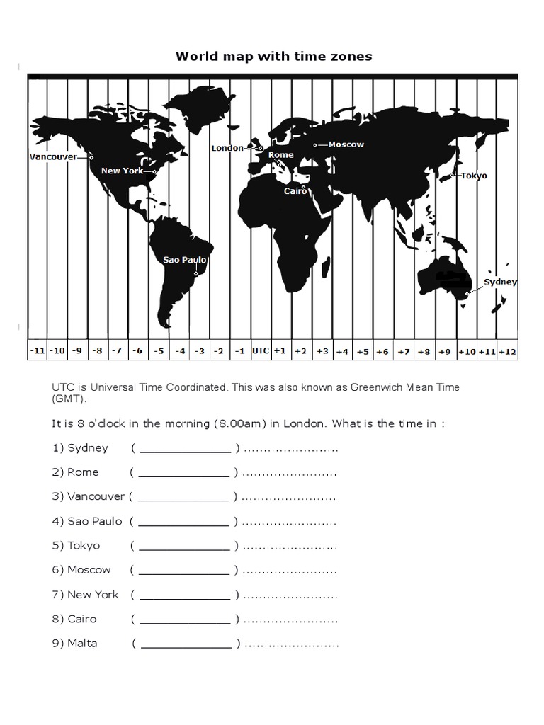 Printable World Map With Time Zones Printable Word Searches