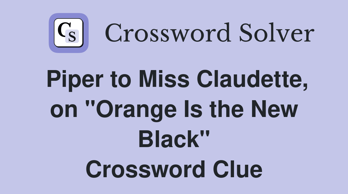 Piper to Miss Claudette on quot Orange Is the New Black quot Crossword Clue
