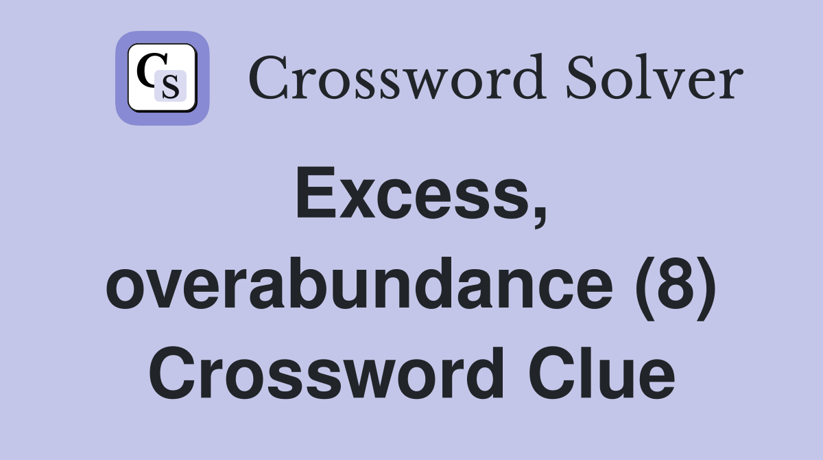 Excess overabundance (8) Crossword Clue Answers Crossword Solver