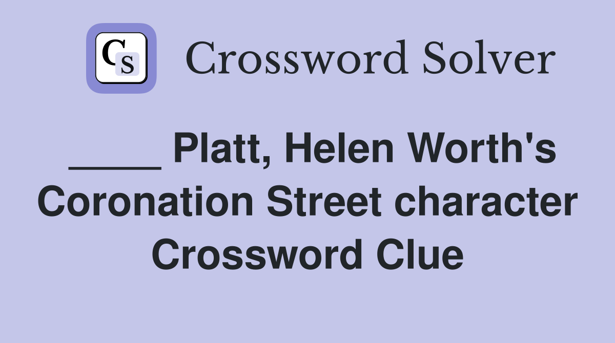 Platt Helen Worth s Coronation Street character Crossword Clue