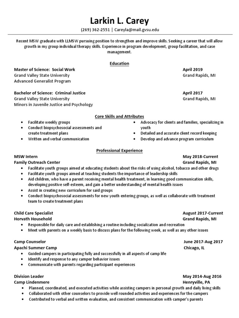 Larkin Carey Resume PDF Mental Health Curriculum