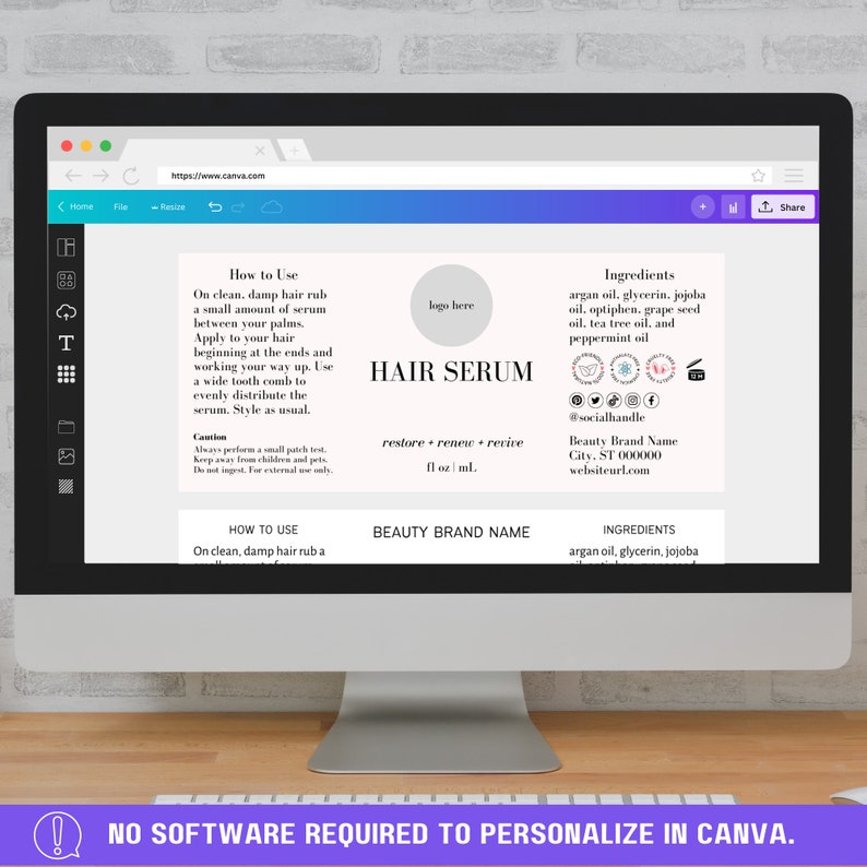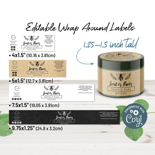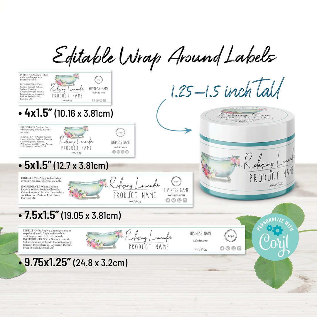 Cosmetic Label Template / Editable Wrap Around Label Template Etsy