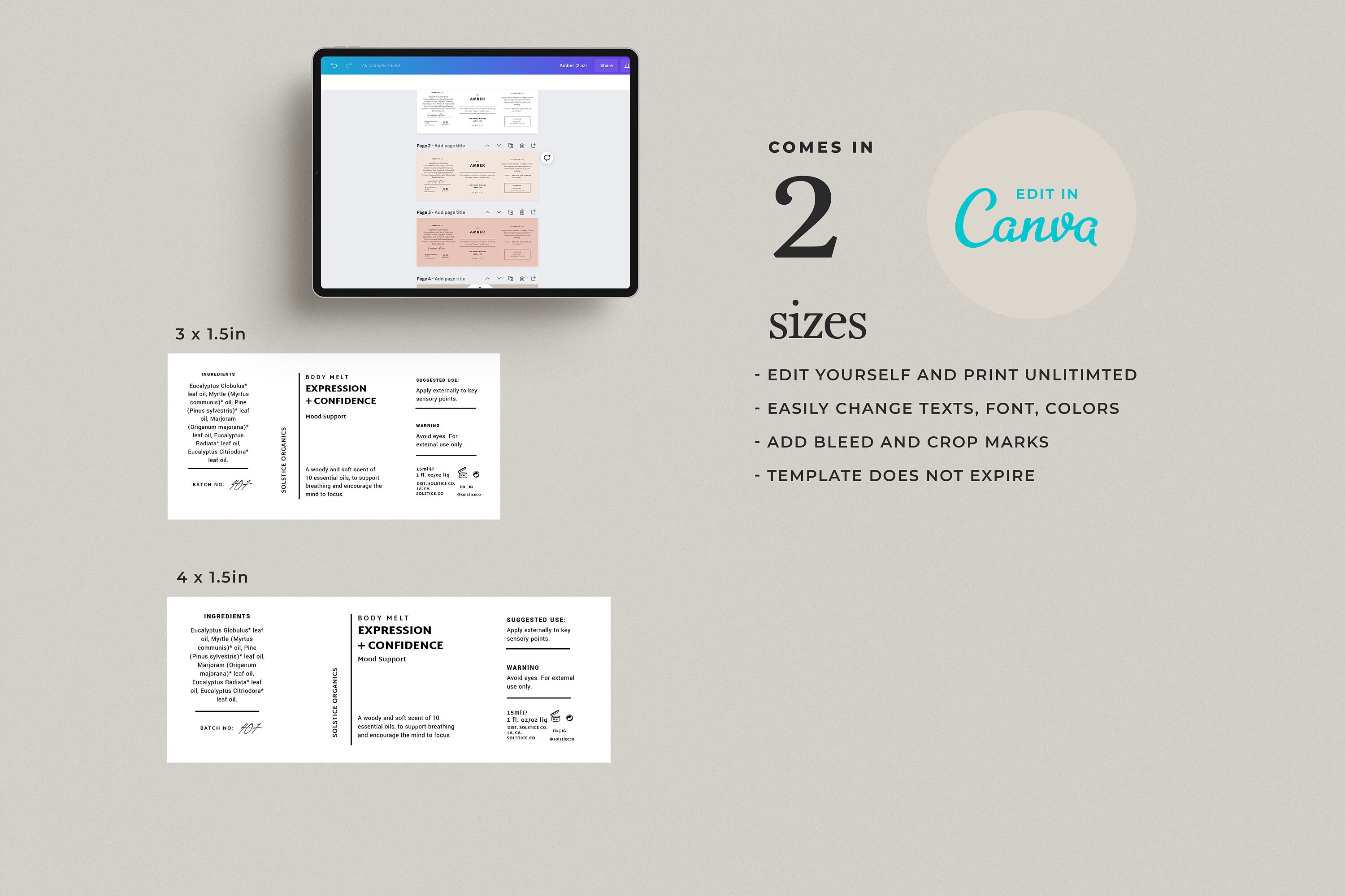 Cosmetic Label Template / Editable Wrap Around Label Template