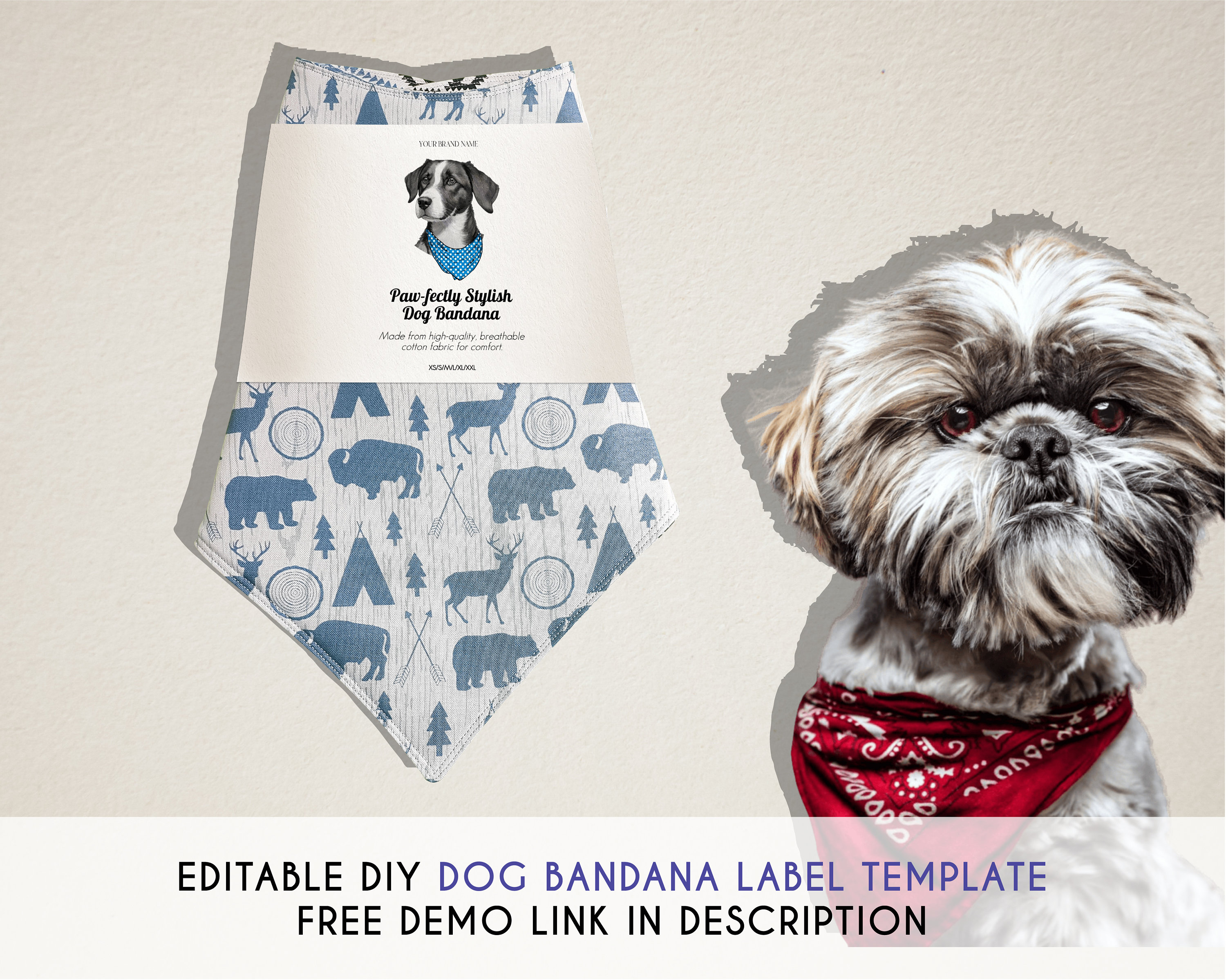 Editable Minimalist Dog Bandana Label Template Printable Luxury Pet