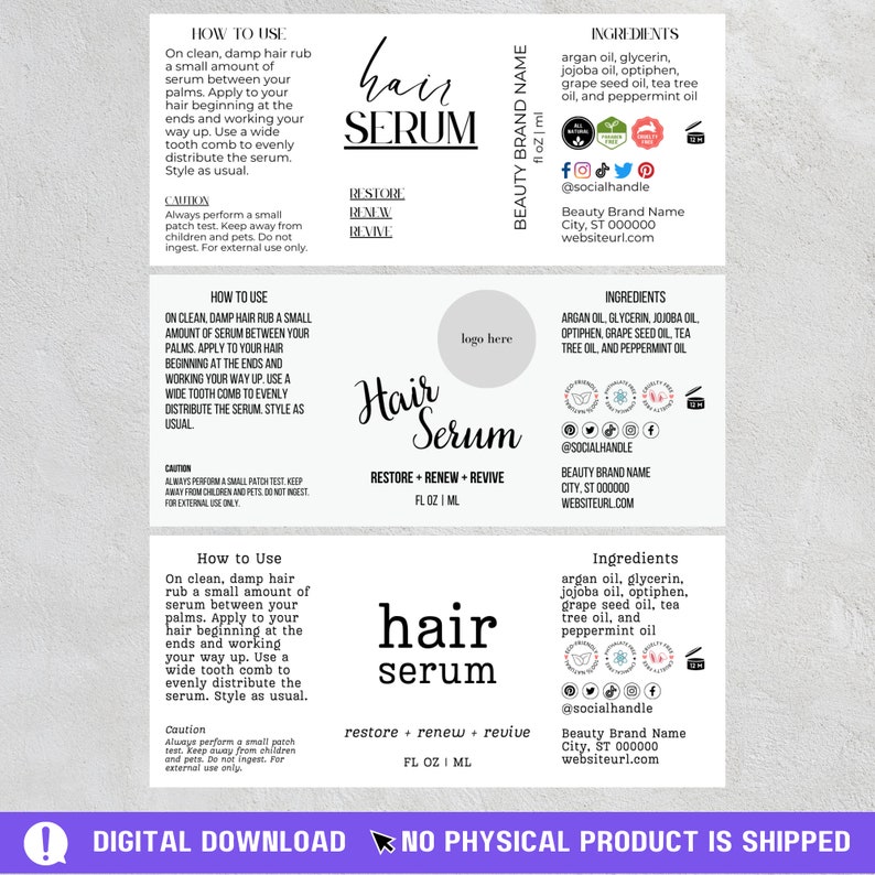 Serum Oil Dropper Wrap Around Label Template Custom Hair Serum Etsy