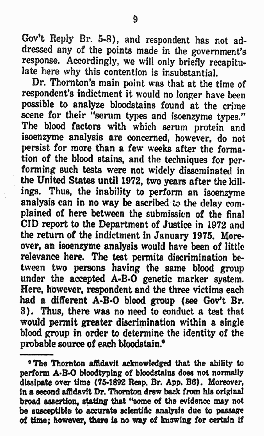 U S Brief in Opposition SCOTUS Dec 1982 Jeffrey MacDonald Case