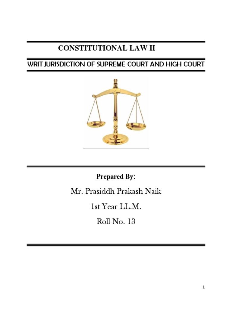 Constitutional Law Ii: Writ Jurisdiction of Supreme Court and High