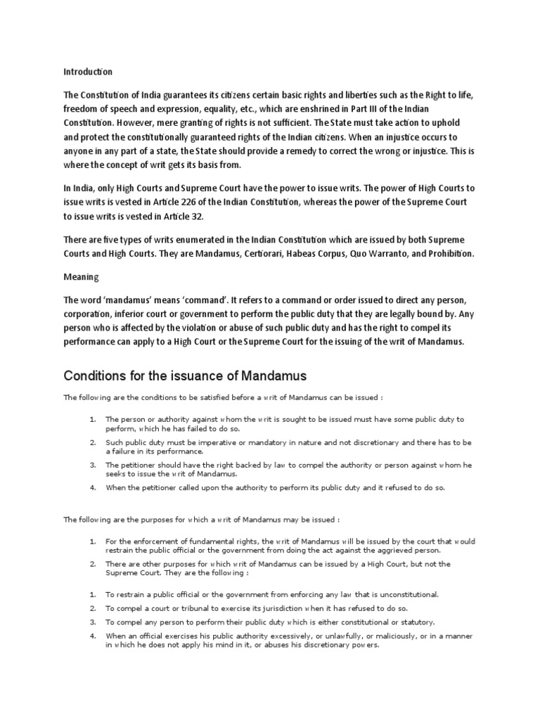 Writ of Mandamus PDF Mandamus Writ