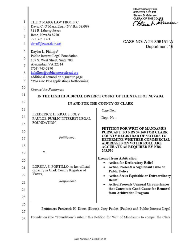 Petition For Writ of Mandamus PDF Voter Registration Mandamus