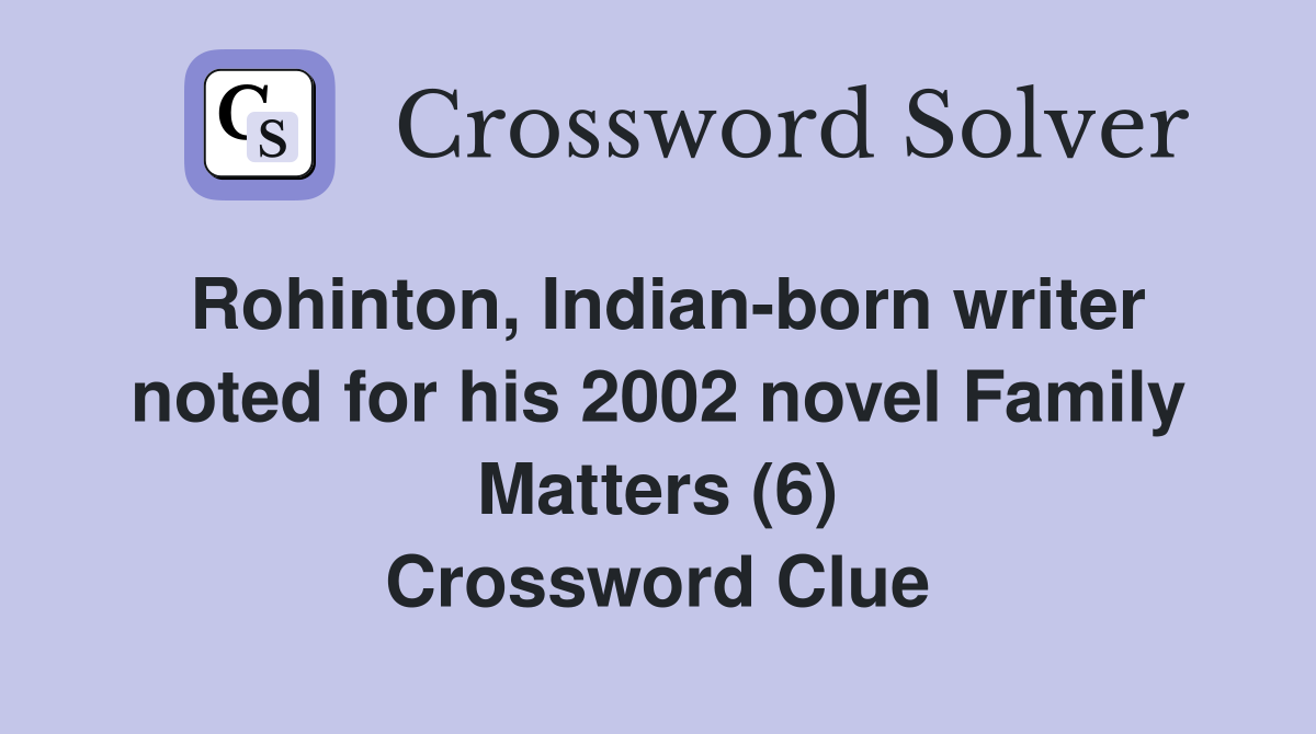 Rohinton Indian born writer noted for his 2002 novel Family Matters (6