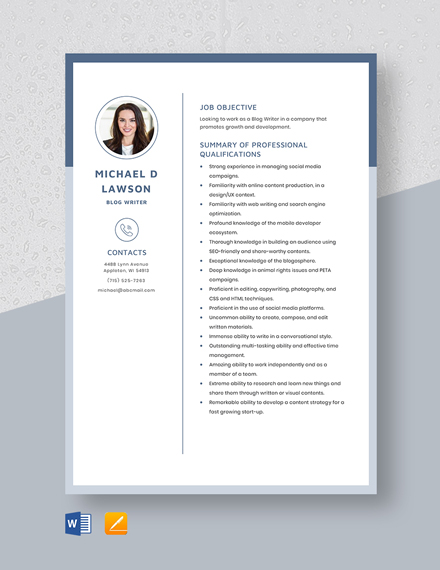 Writer Resume Templates in Word to Download