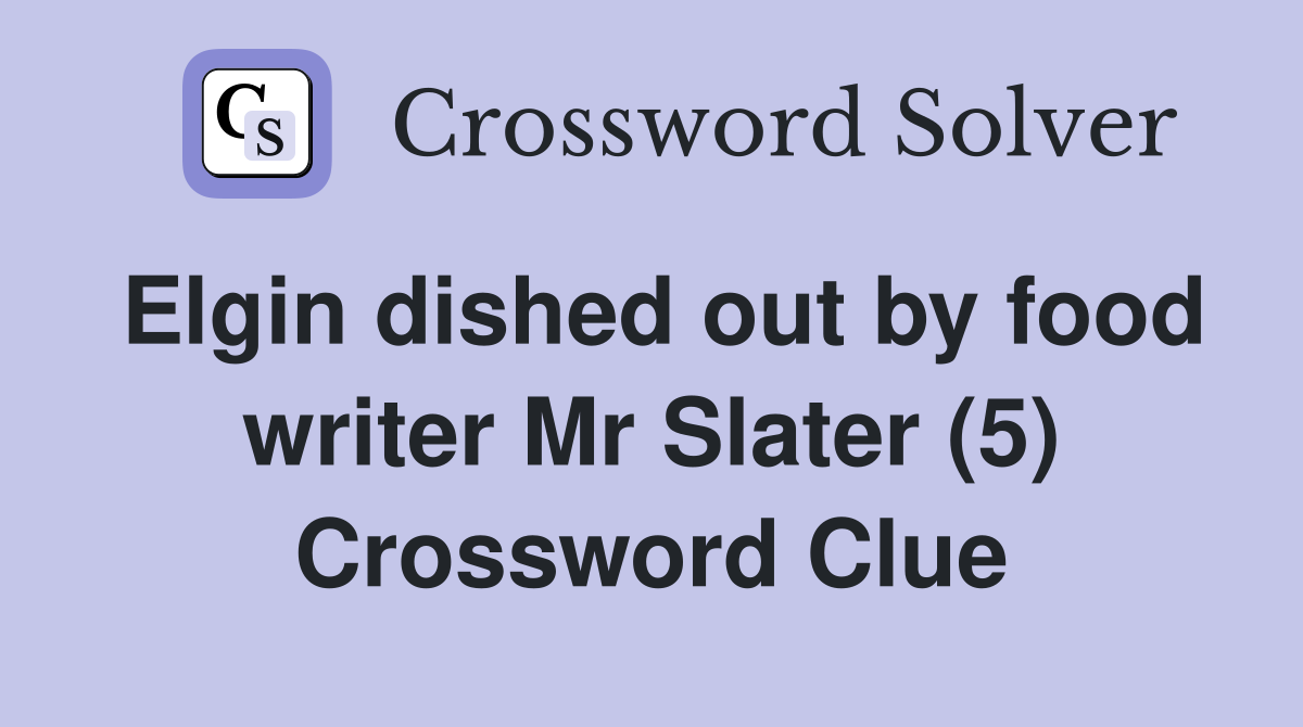 Elgin dished out by food writer Mr Slater (5) Crossword Clue Answers