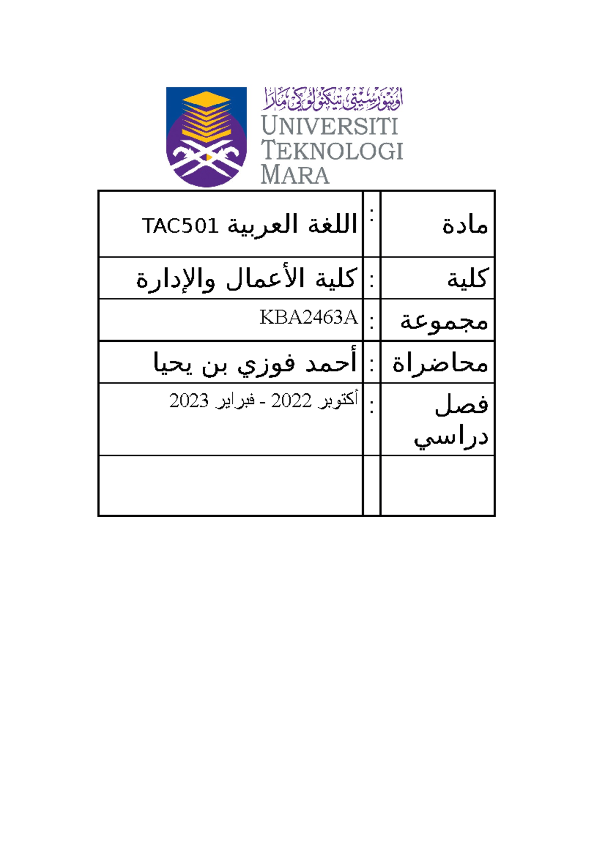 Template Skrip ROLE PLAY TAC501 اللغة العربية : مادة كلية الأعمال