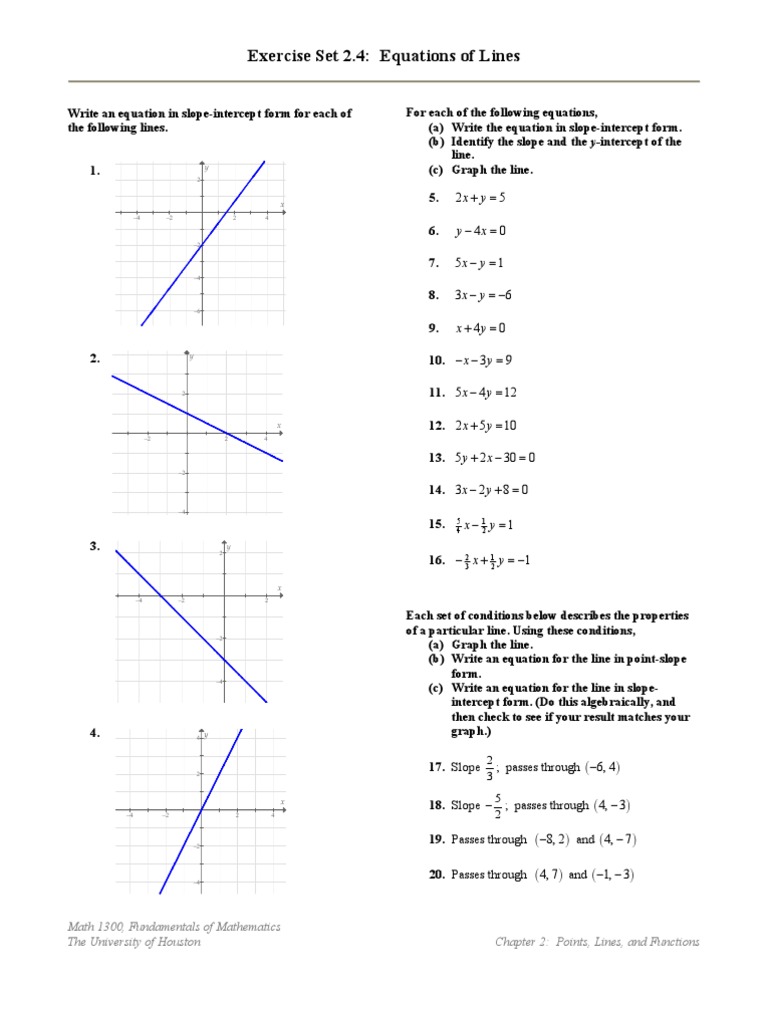 Exercise Slope Intercept Form Equations Elementary Mathematics