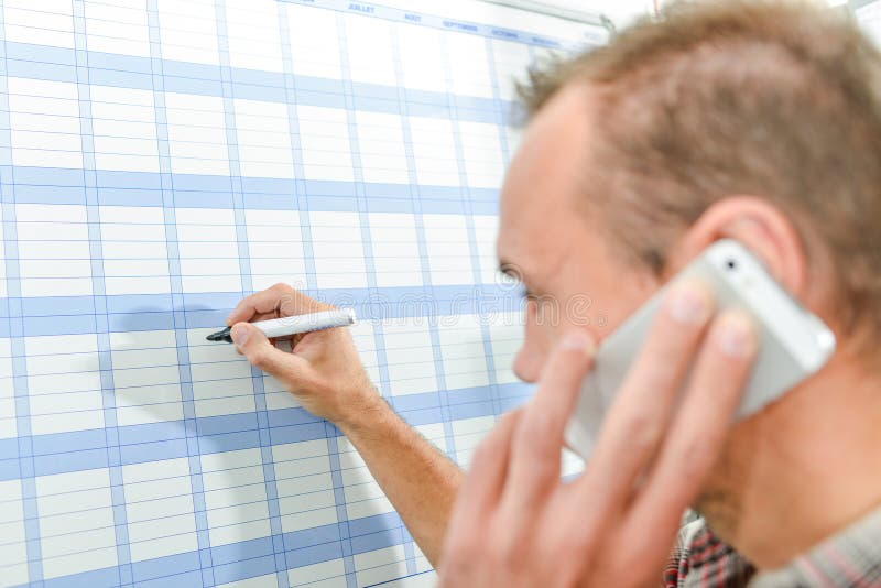 Man Hands and Writing on Calendar in Workplace Plan Schedule and