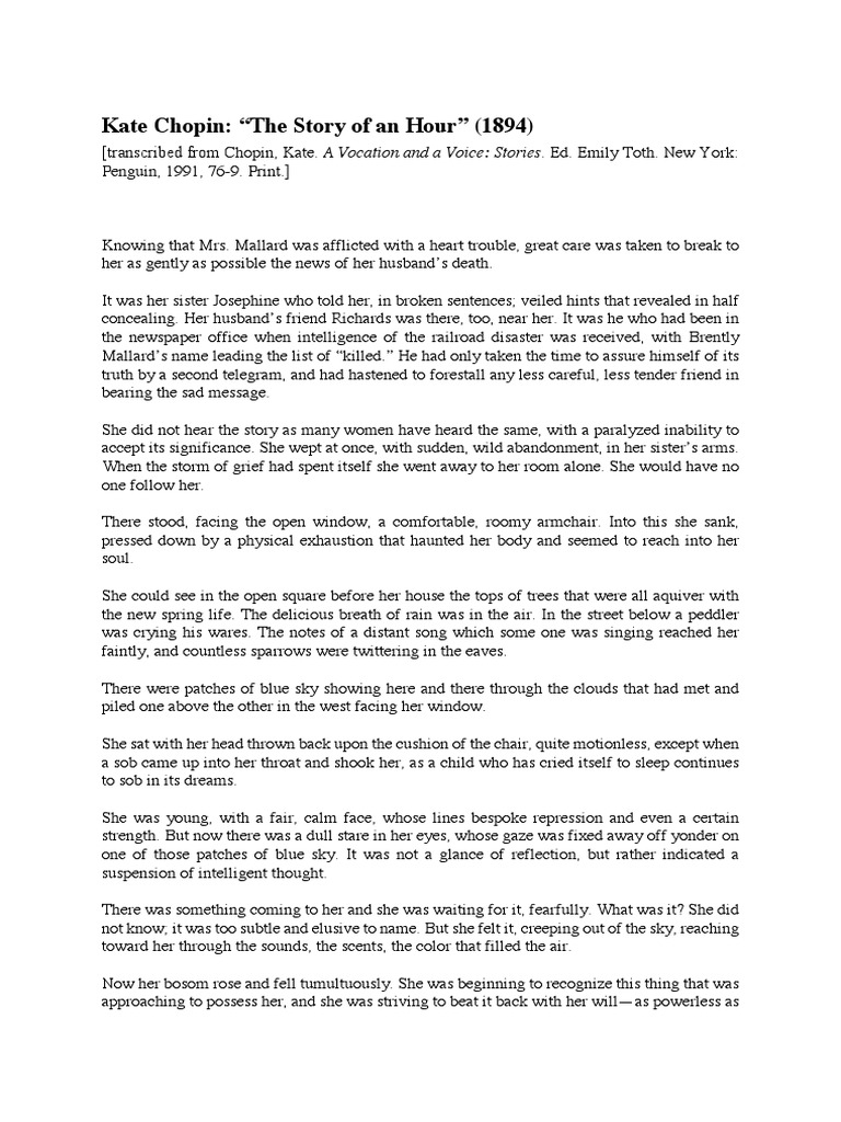 The reading is Kate Chopins Story Of An Hour i already have an an docx