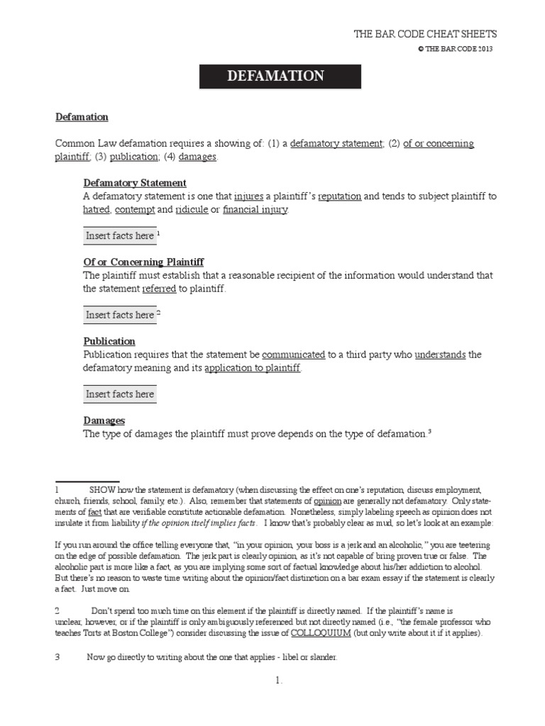 Defamation Cheat Sheet PDF Defamation Murder