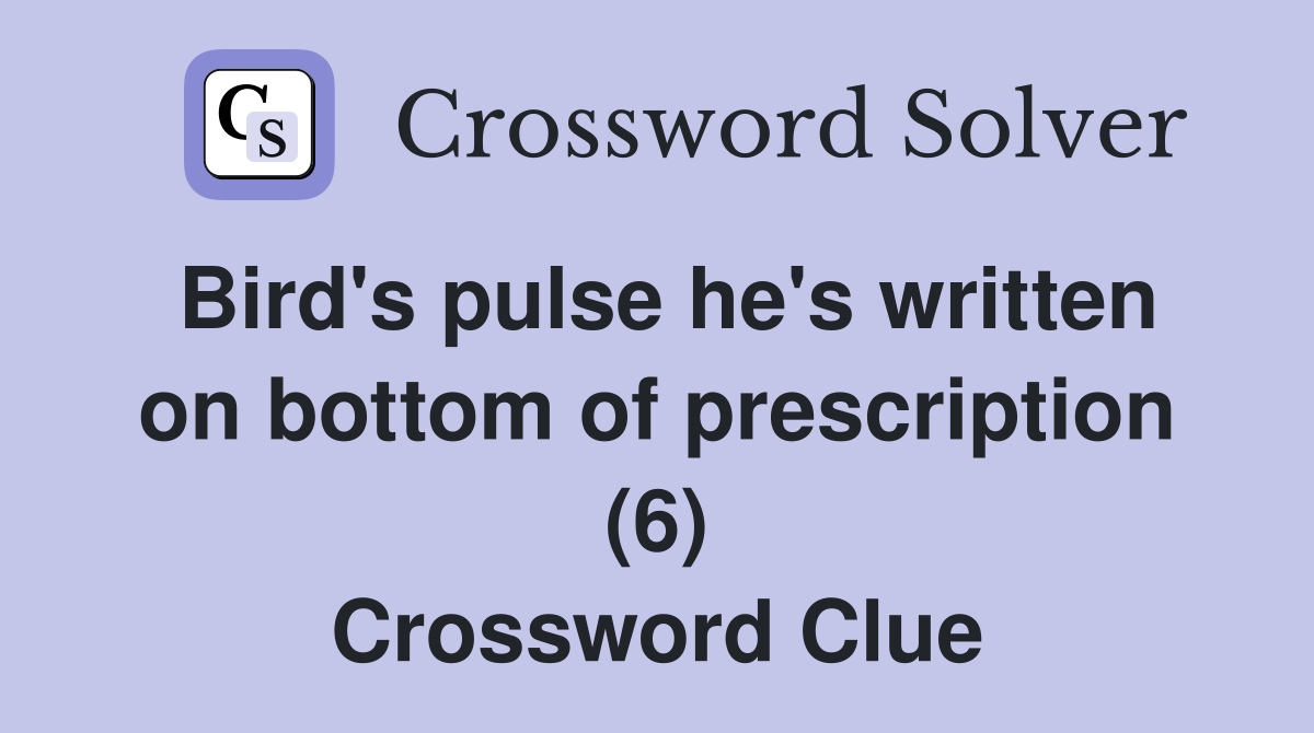 Bird #39 s pulse he #39 s written on bottom of prescription (6) Crossword