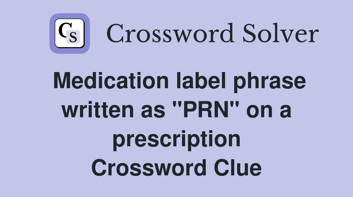 Medication label phrase written as quot PRN quot on a prescription Crossword