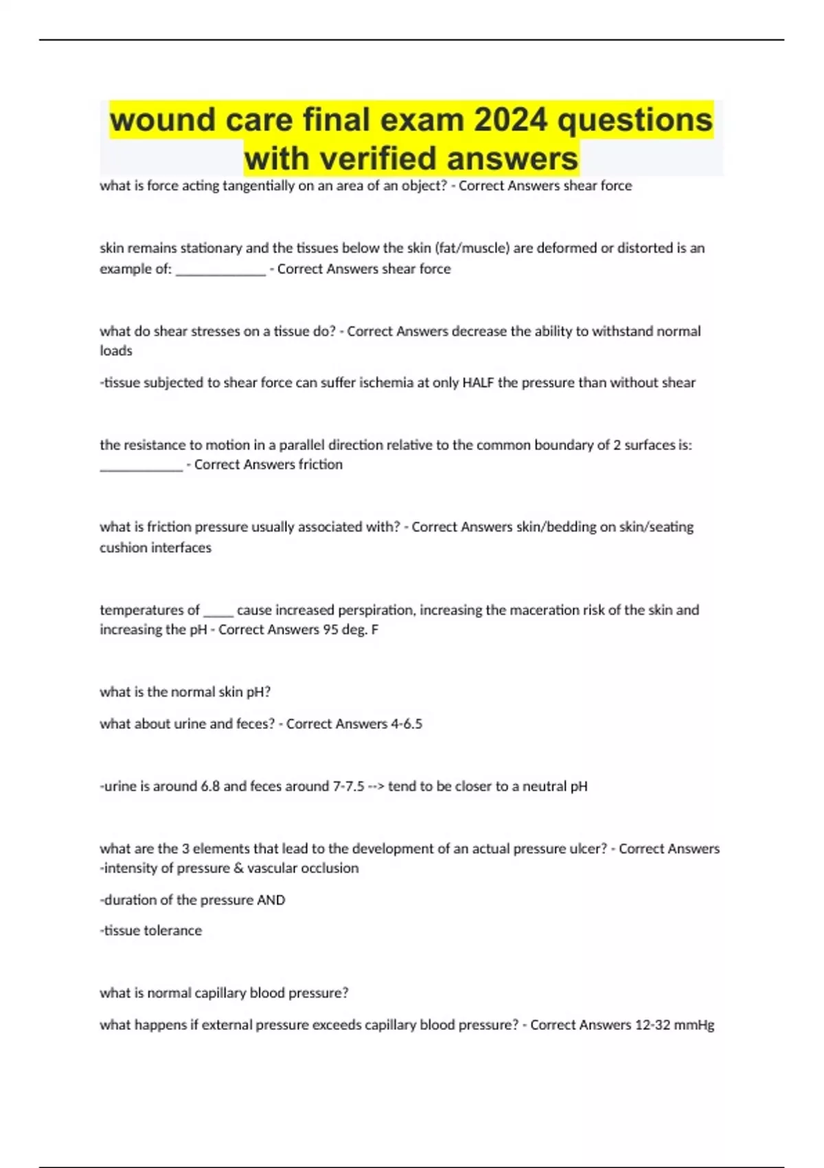 wound care final exam 2024 questions with verified answers Wound care
