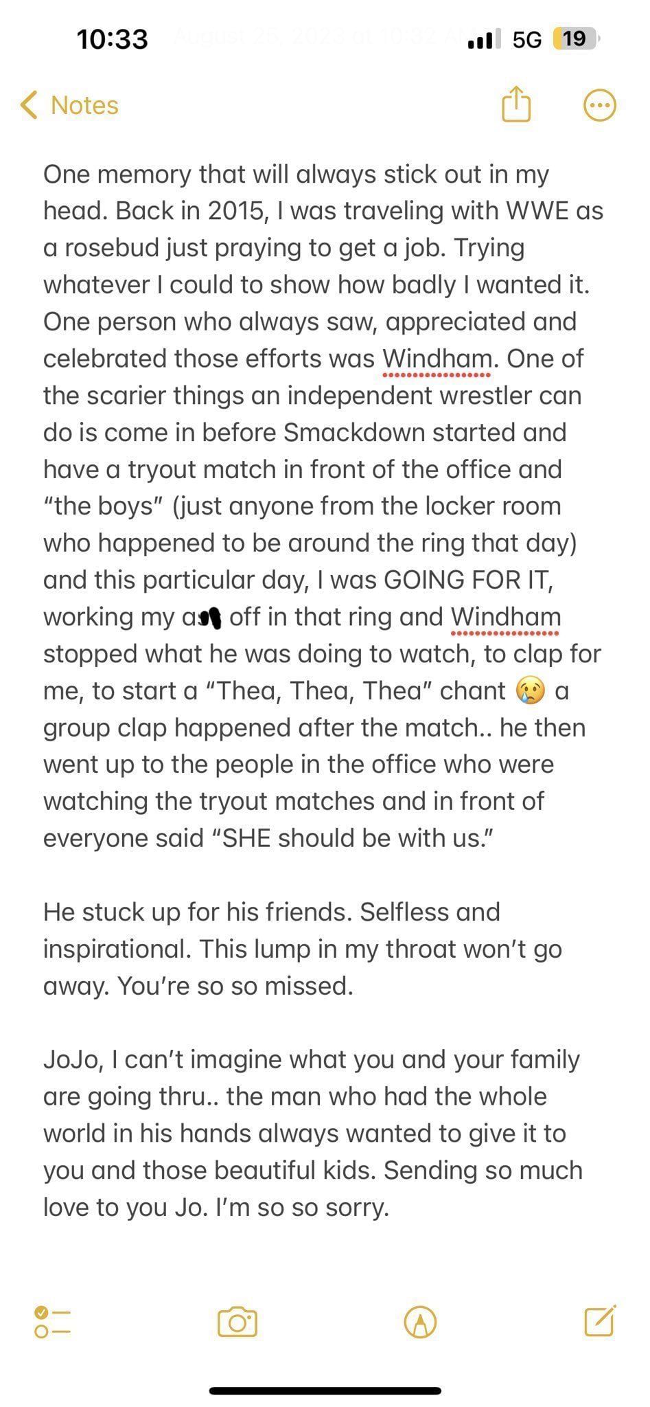 32 year old star recalls a memory of Bray Wyatt being quot selfless and