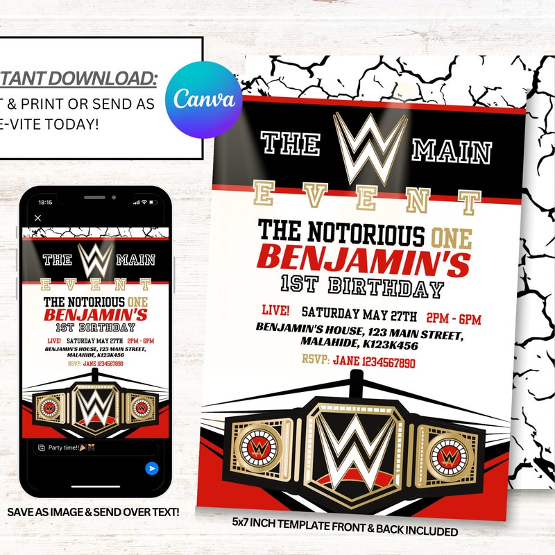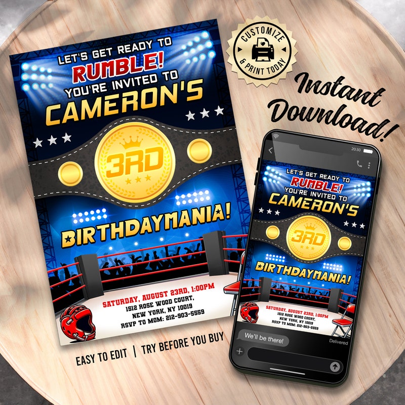 WWE Birthday Invitation WWE Birthday Party Invitations Etsy