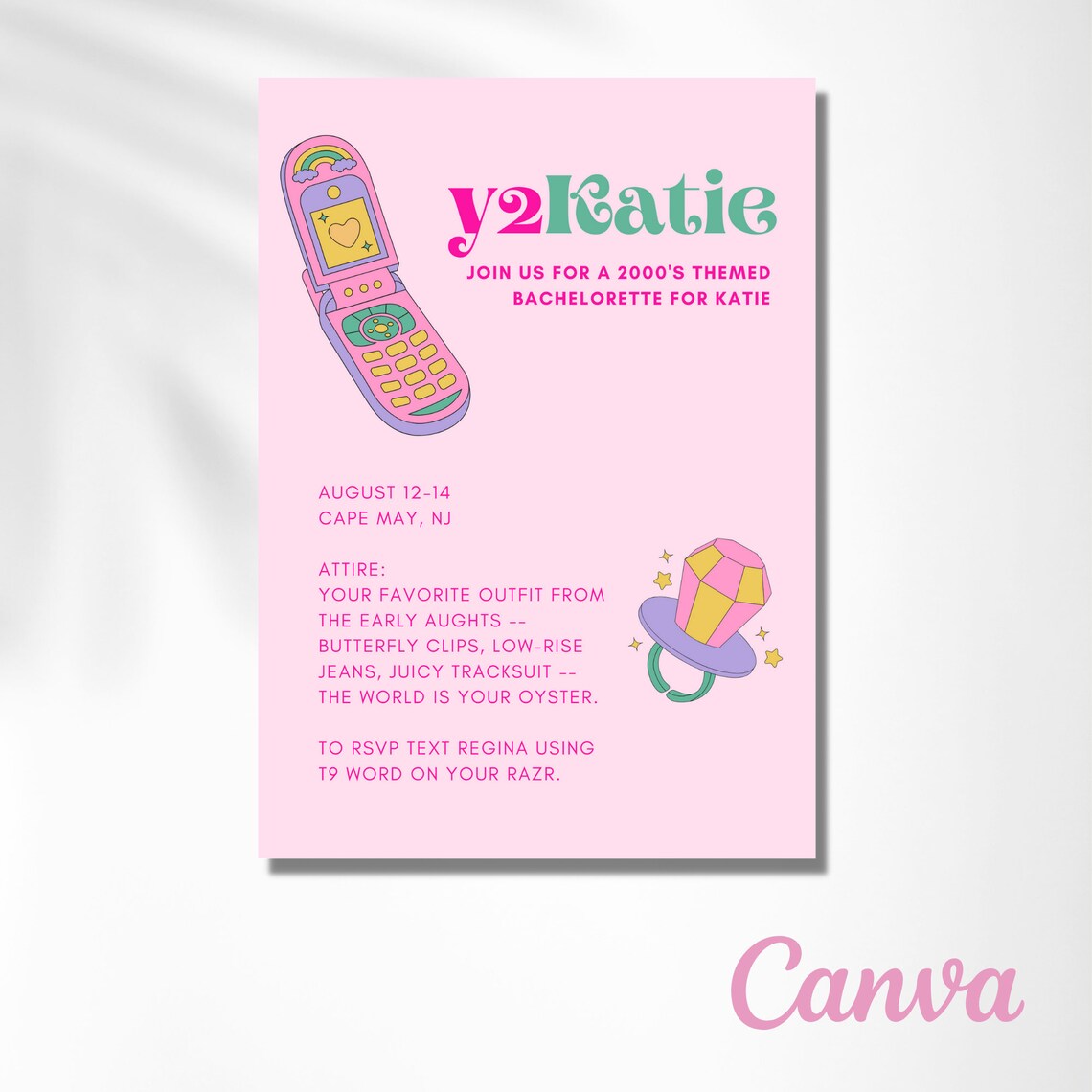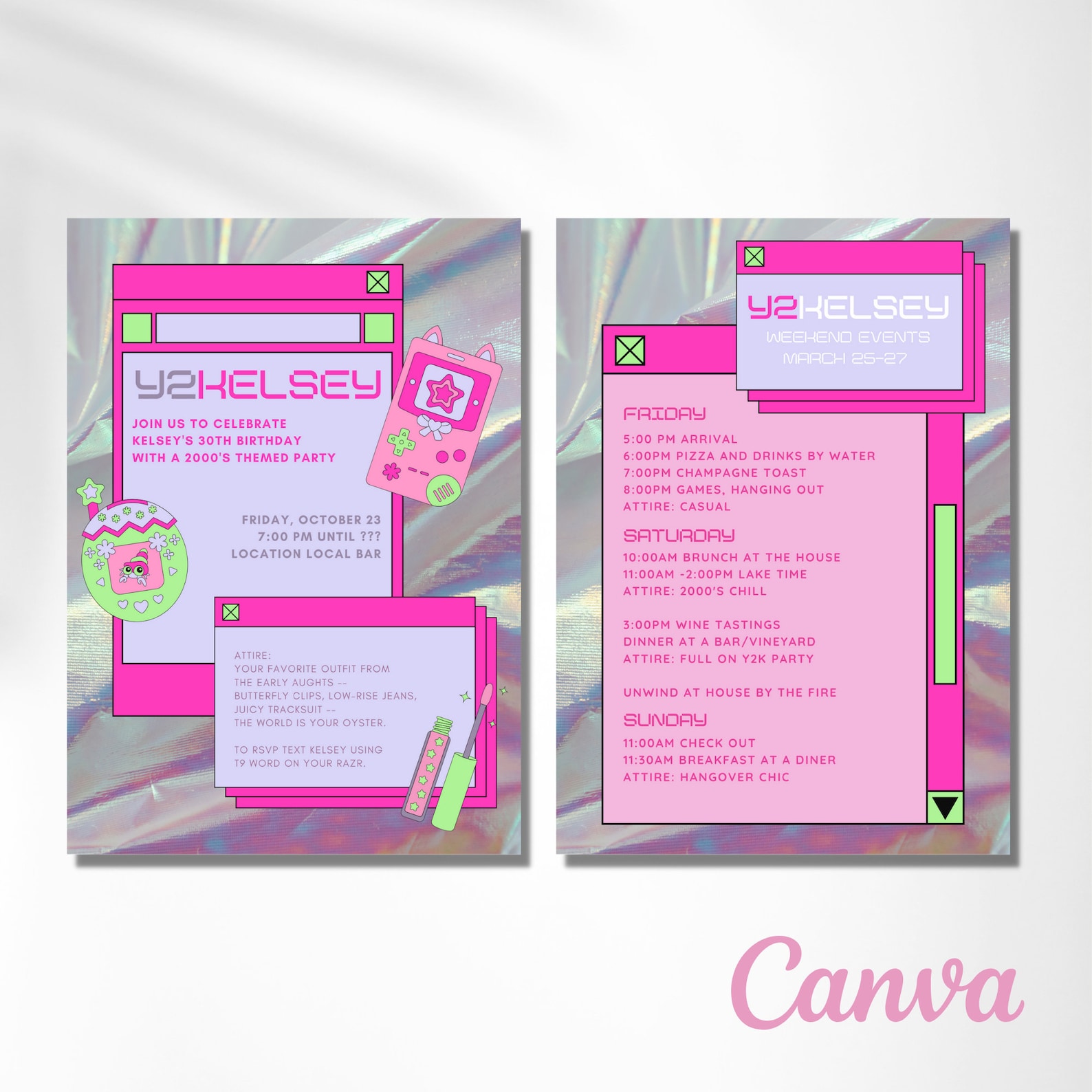Editable Y2K Invitation Template Y2K Party Y2K Canva Etsy Israel
