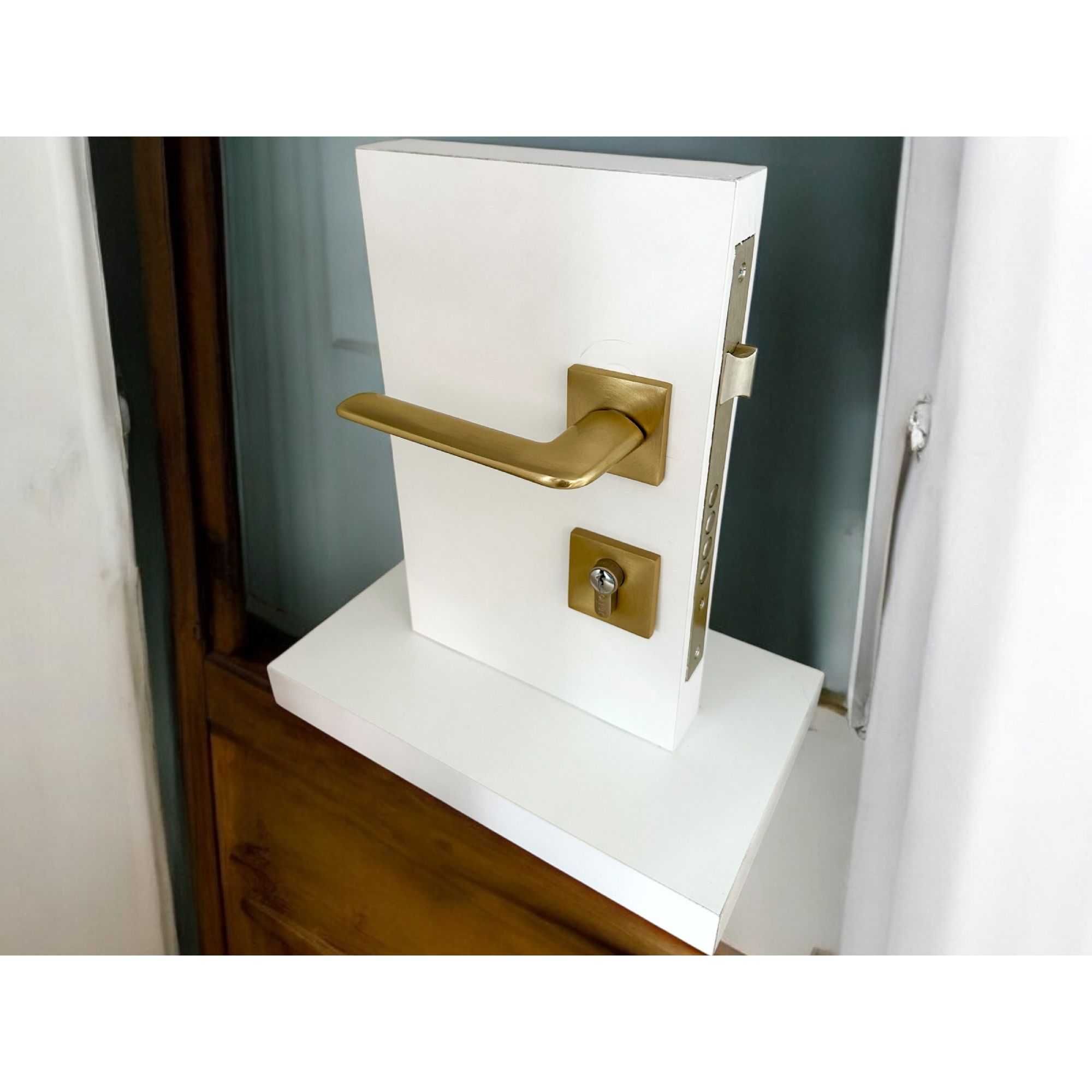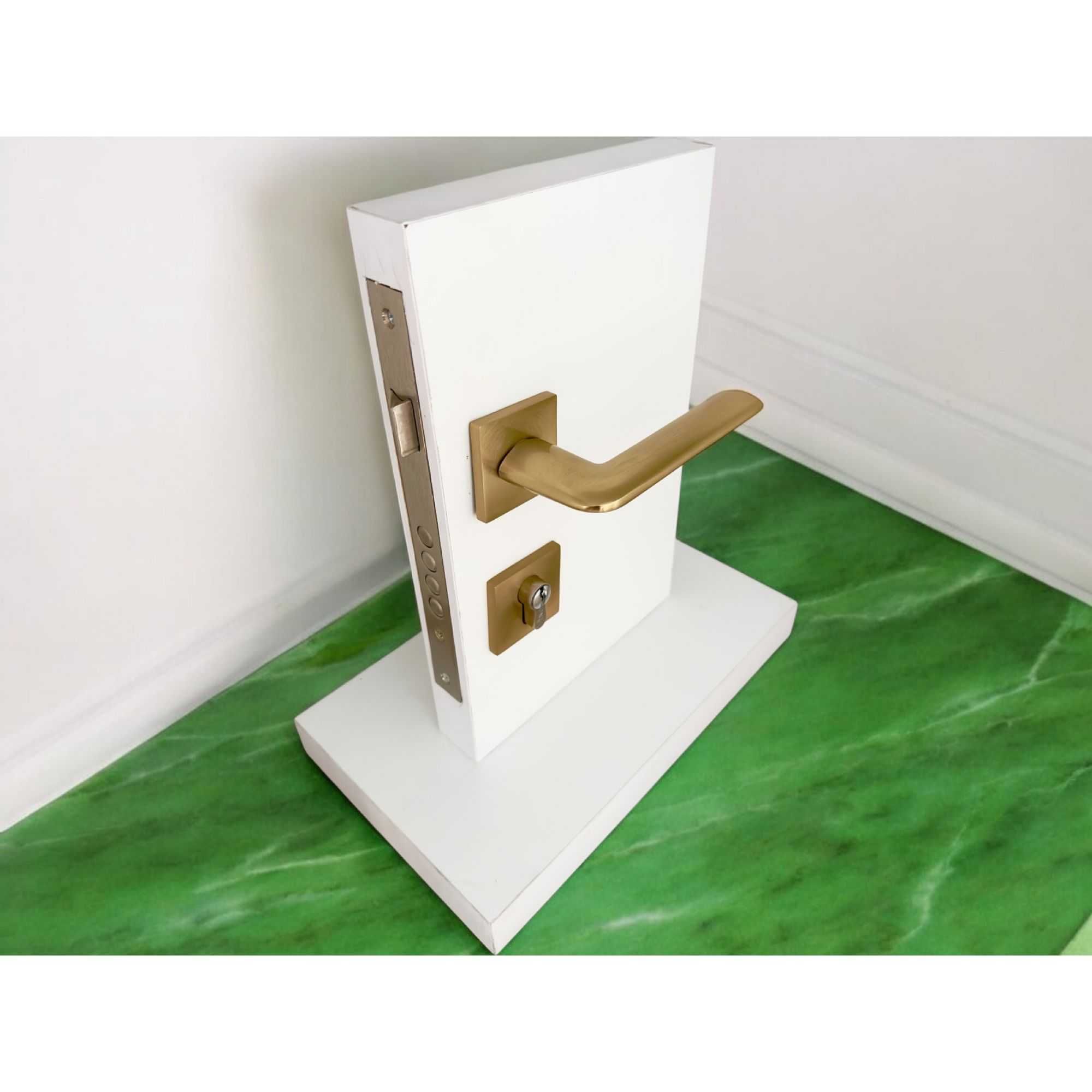 Fame AL04 Mat Skoç Titanyum Kare Rozetli Yale Çelik Kapı Kolu 1 Takım