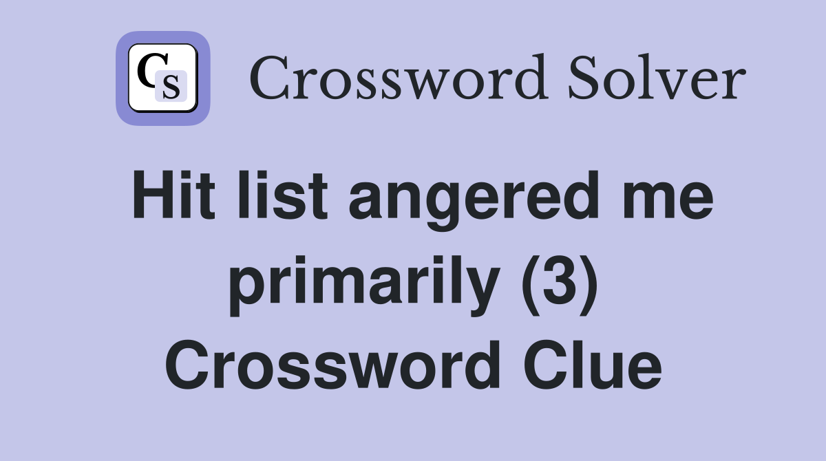 Hit list angered me primarily (3) Crossword Clue Answers Crossword