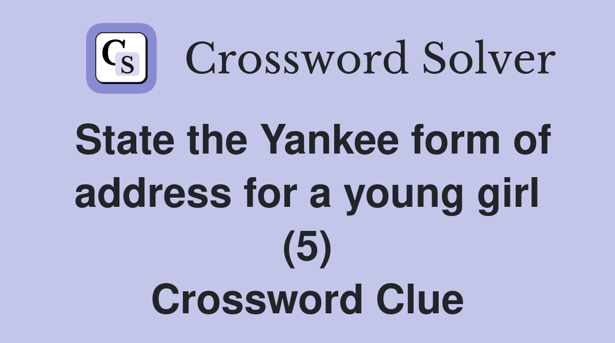 State the Yankee form of address for a young girl (5) Crossword Clue