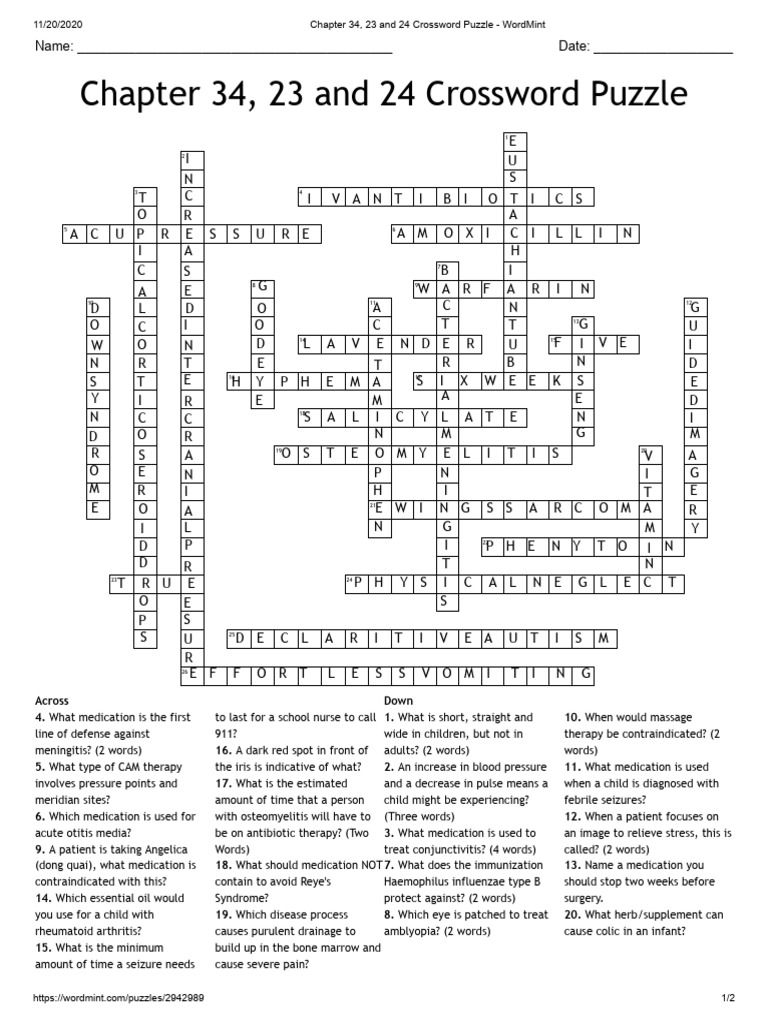 Chapter 34 23 and 24 Crossword Puzzle PDF Clinical Medicine