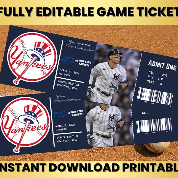 Instant Download Printable Yankees Ticket Game Baseball Ticket