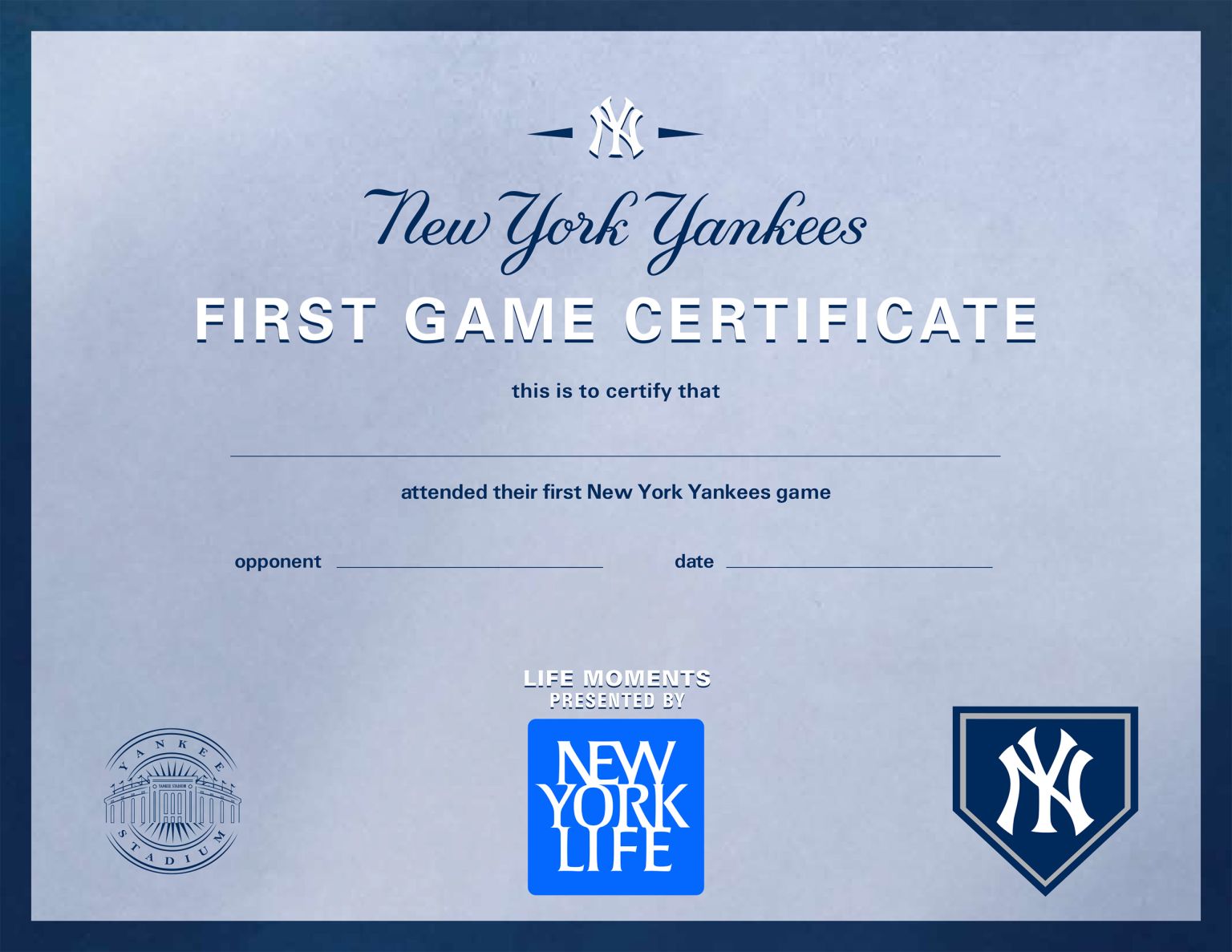 First Game Certificate Yankees prntbl concejomunicipaldechinu gov co