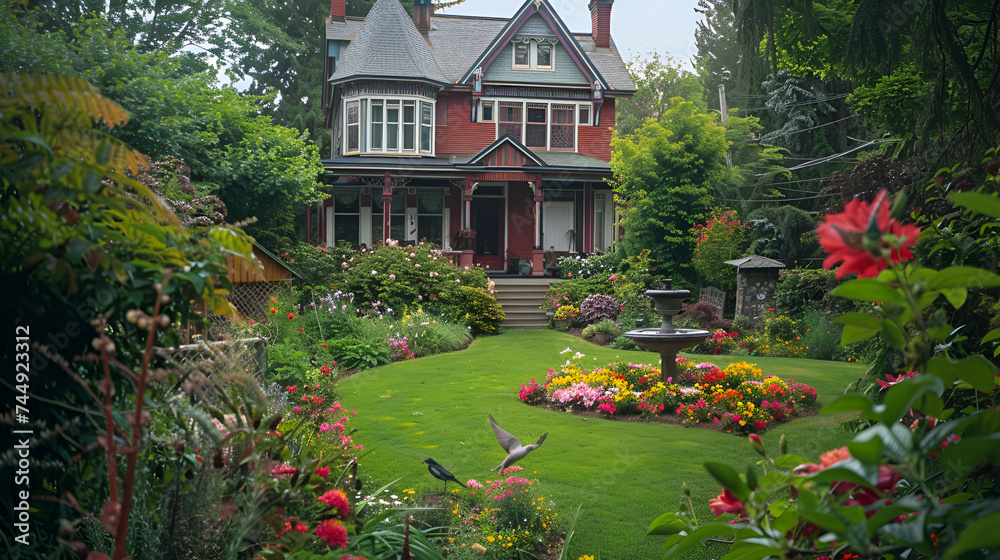 Premium Photo A victorian house with a lush wellmaintained garden in