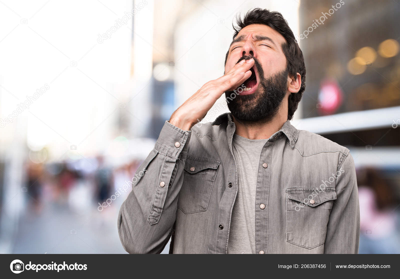 Handsome Man Beard Yawning Outdoor Stock Photo by ©luismolinero 206387456