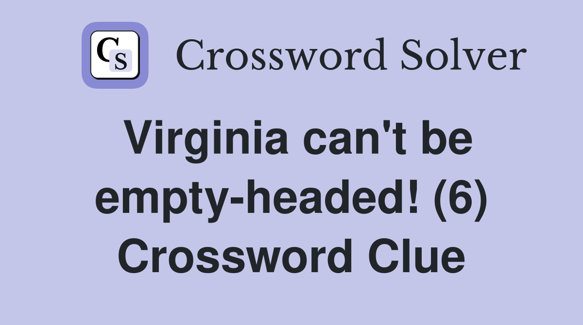 Virginia can #39 t be empty headed (6) Crossword Clue Answers