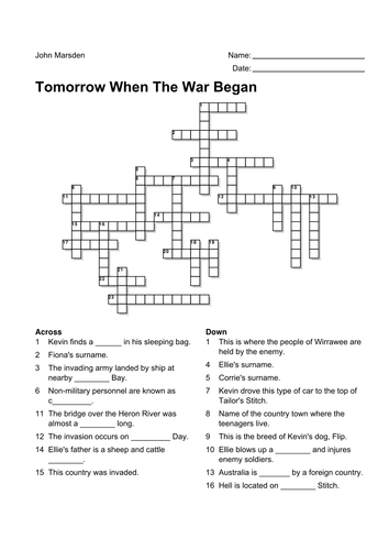 TOMORROW WHEN THE WAR BEGAN Crossword WordMint