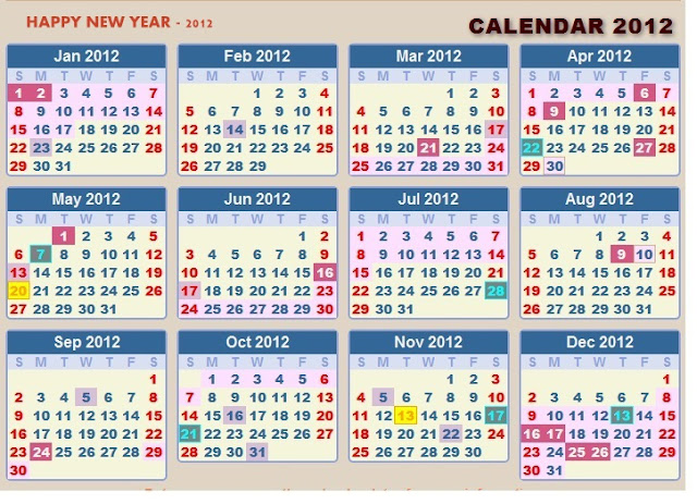 MdMIndia: New Year Calendar 2012 with Government Holiday lists