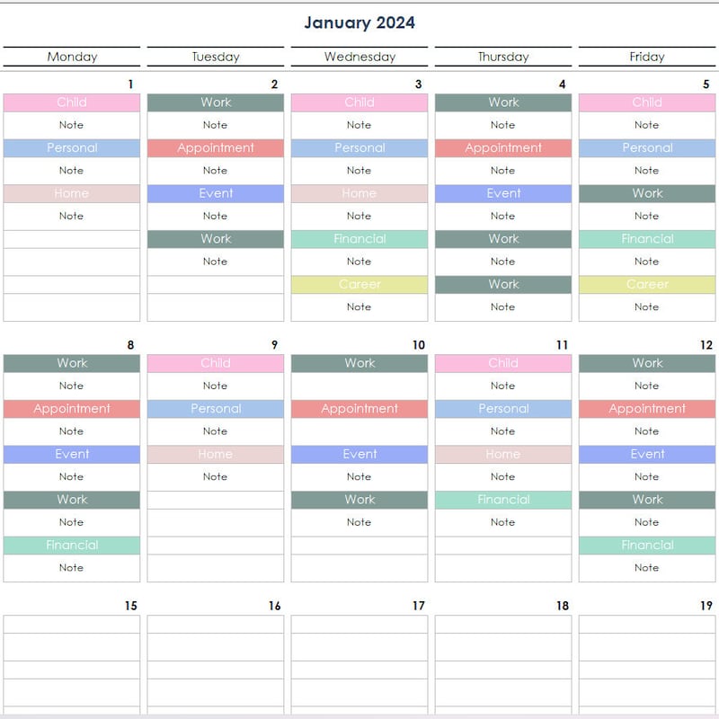 Excel calendar 2025 template Etsy de
