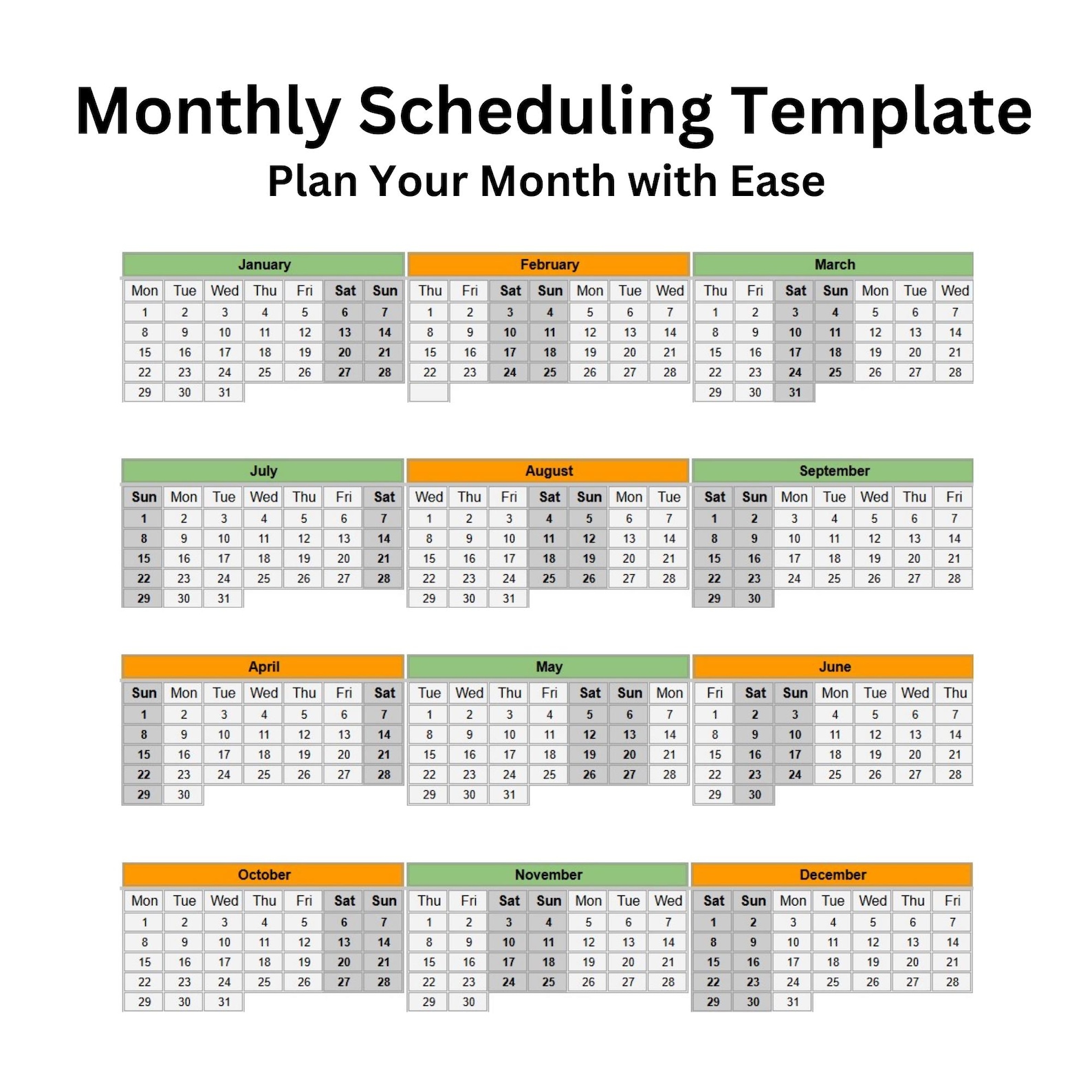Year Calendar Excel Template
