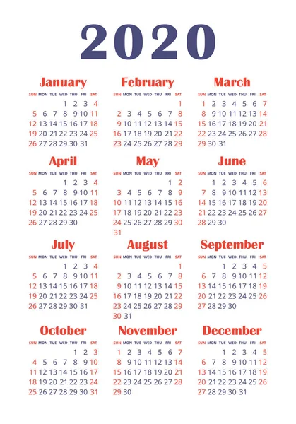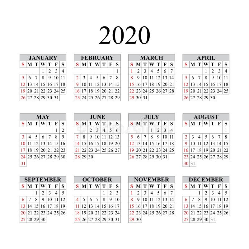 Vector Calendar for 2020 Year EPS10 Stock Vector Illustration of